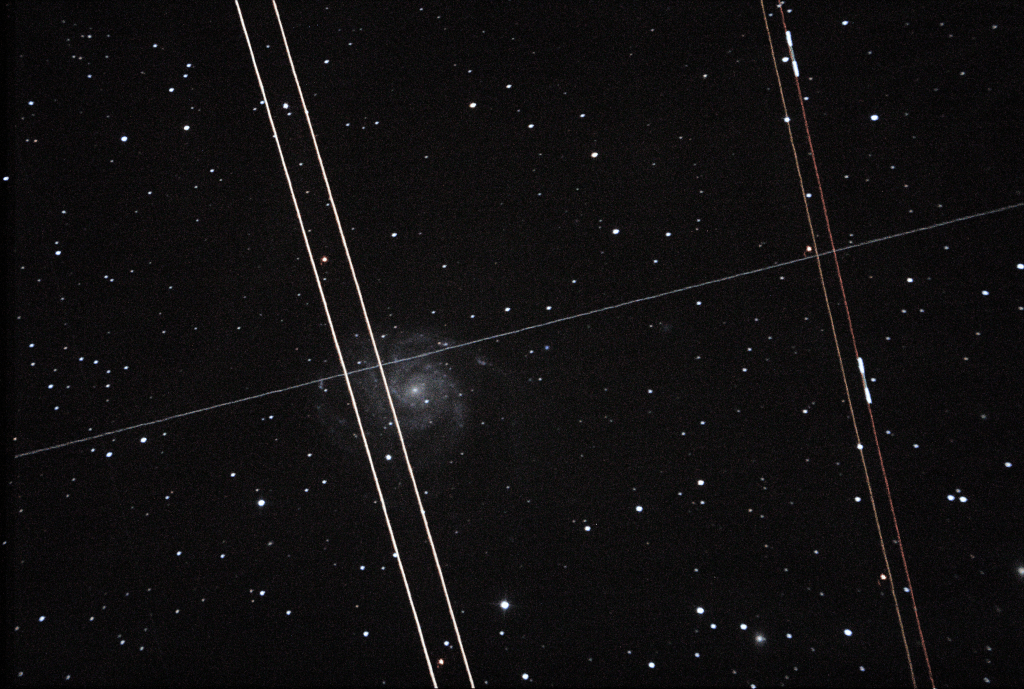 The Camp Delany star party at Sun Lakes state park sits nearly under two major flightways, and have airline traffic every few minutes. So a multi-minute exposure will often capture a plane passing through, showing lines for lights constantly on, and also periodic flashes visible.